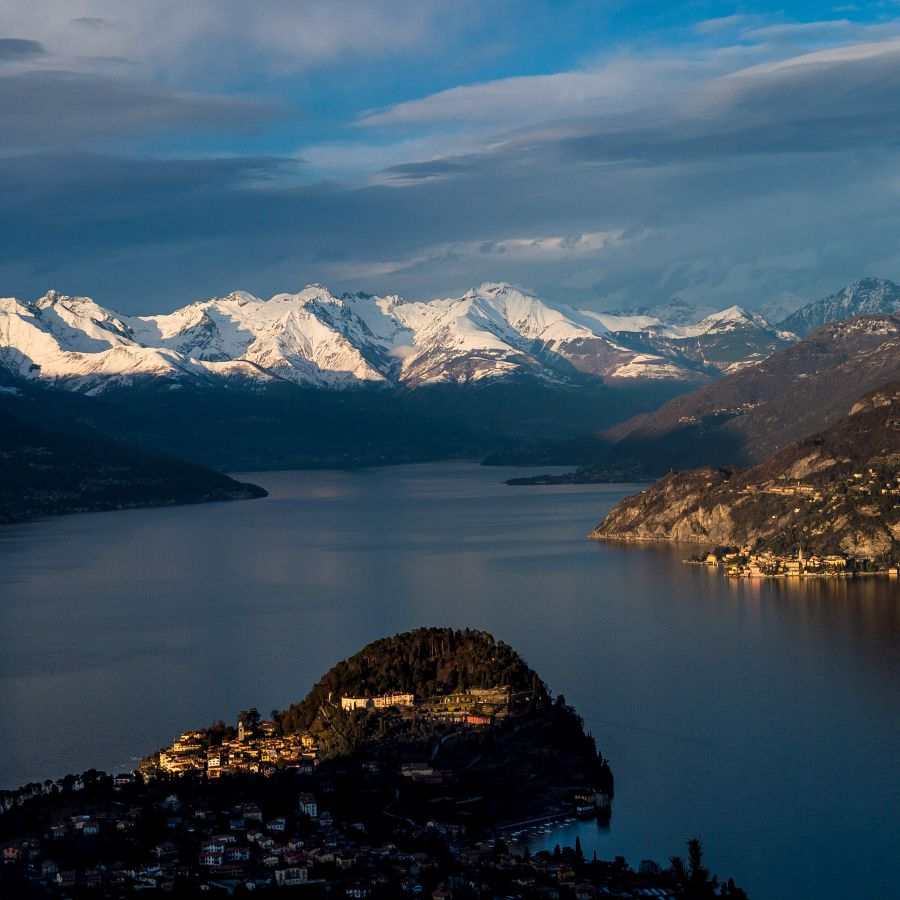 Taglio Fotografico: Utilizzo di obiettivi grandangolari per catturare l'immensità, ma anche teleobiettivi per isolare la forma dei promontori (come la punta di Bellagio) che sembrano "tagliare" l'acqua.